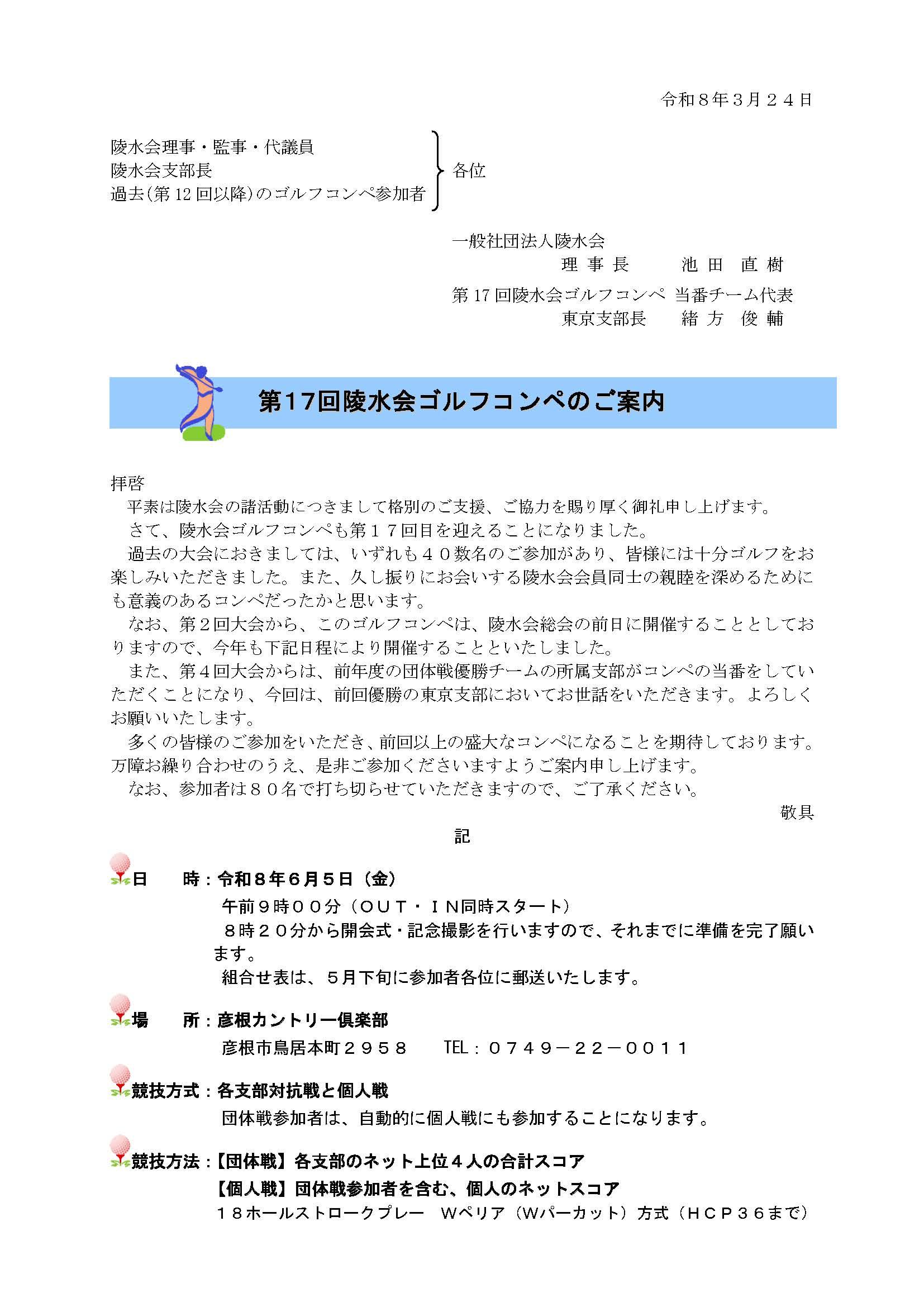 第17回陵水会ゴルフコンペ(6月5日開催)のご案内
